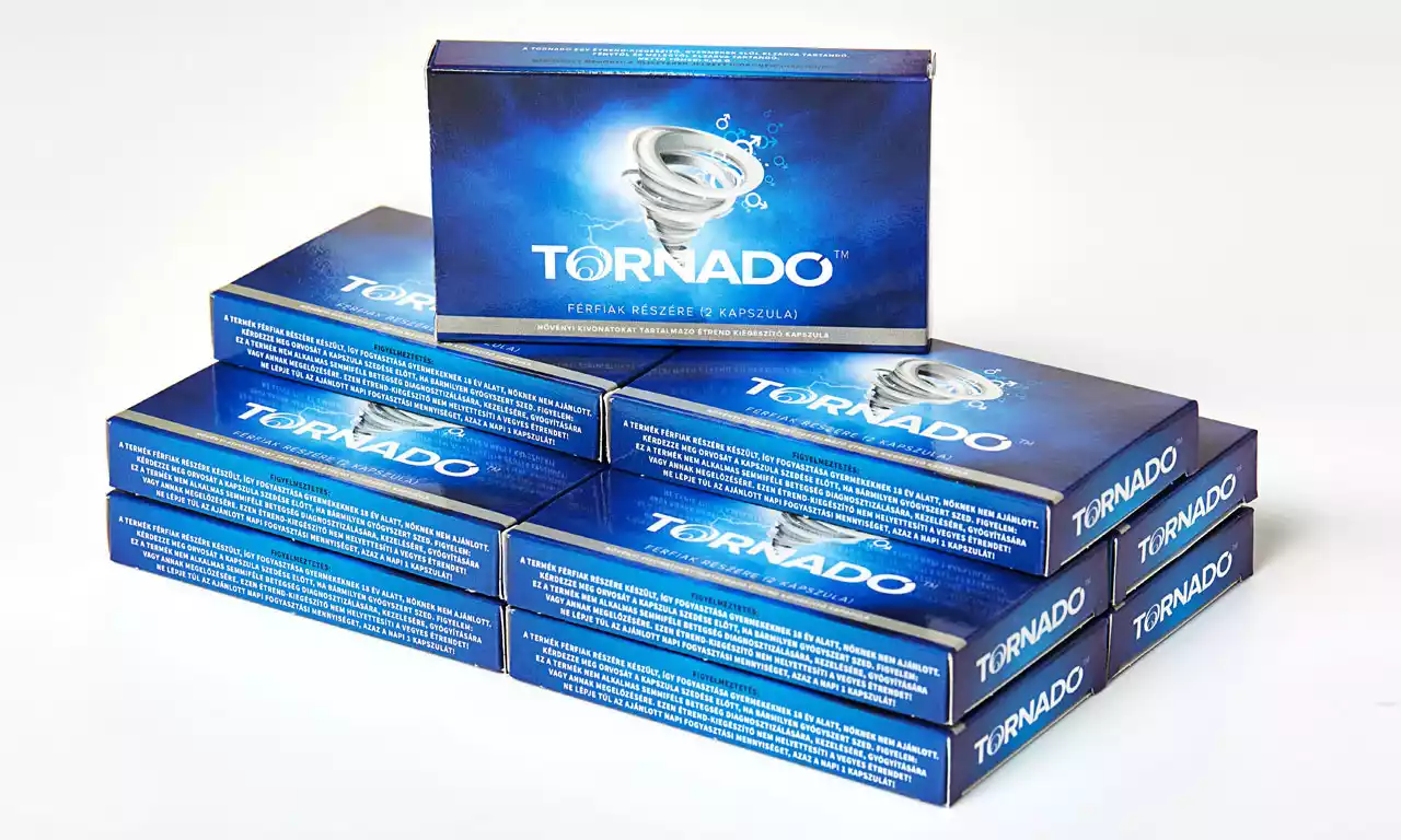 Tornado+ növényi kivonatokat tartalmazó étrend-kiegészítő kapszula férfiak részére.