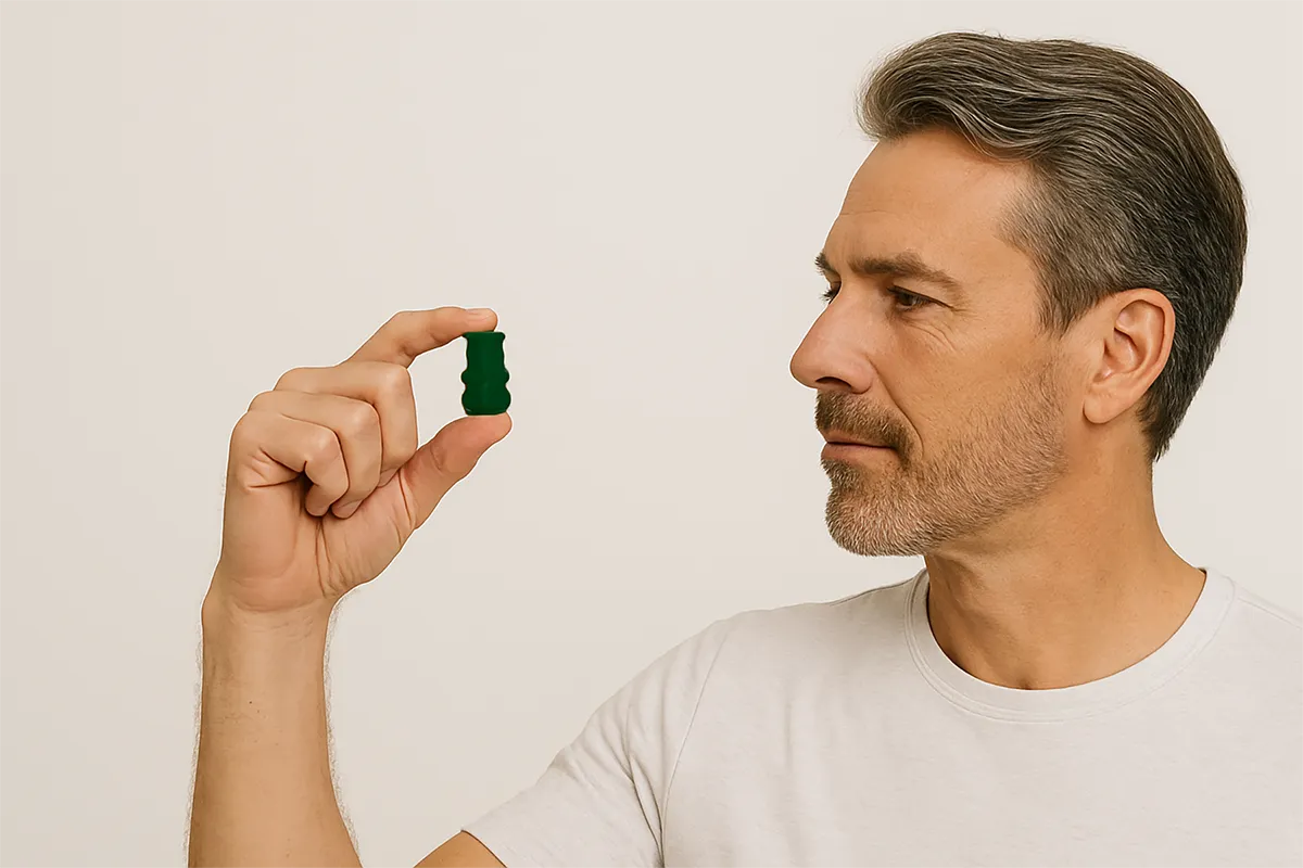 Sötétzöld színű, gumimaci formájú zselés étrend-kiegészítő, savanykás zöldalma ízesítéssel. A magas GABA tartalom miatt enyhe gyömbéres jellegű utóíz érezhető.