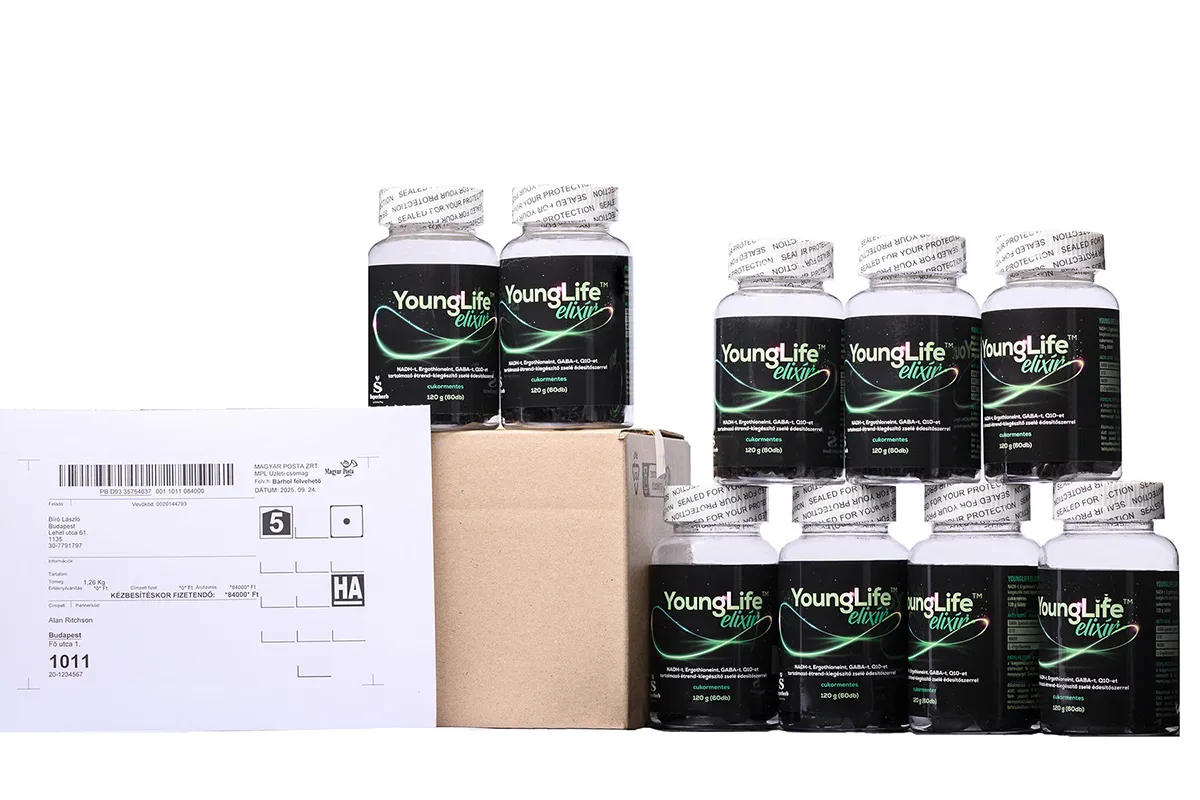 1 dobozban 60 darab YoungLife elixír étrendkiegészítő-zselé található. Egy doboz összesen 1 hónapra elegendő mennyiségű zselét tartalmaz.